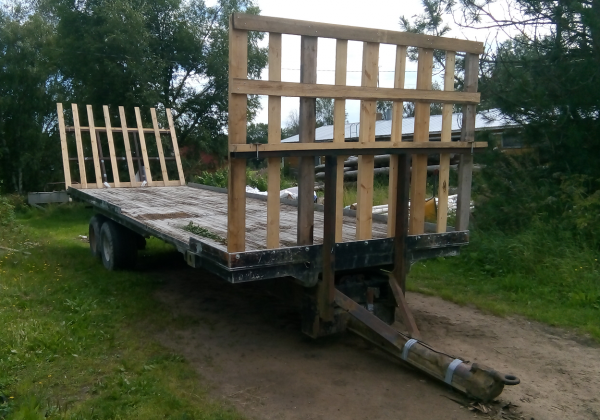 Tein omaan langimallin traileriin nopsaa lisävarusteluna irroitettavat lisäsermit päihin. Tosin kun kärry oli valmis niin sen jälkeen sateihen tiheäsyklisyys vain kasvoi ja piteni kuukausien mittaiseksi joten kärryä ei tarvinut pellolle asti viedä.. :D Koska kärryn lavarunko perustuu kuorma-auton rahtilavaan aattelin tekasta siihen vielä pressukapellit sopivassa välissä kun aina silloin tällöin on jotain kuljetettavaa jota ei haluais sotkea rapaan kuljetuksen aikana.. No tuosta saa lisäpatentoinnilla semmosen "monitoimitrailerin" aika iisisti..