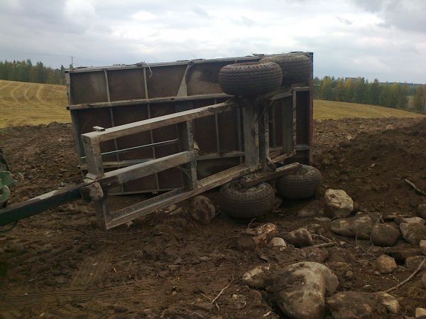 jäikö se kivi tuonne lavan alareunaan ja nosti koko kärryn ilmaan? menikö mitään rikki`?