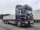 Maanrakennus Tikkasen Scania136 katseluaMaanrakennus Tikkanen Oy:n nosturilla varustettu Scania rahtiauto.